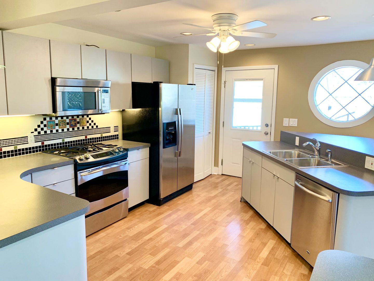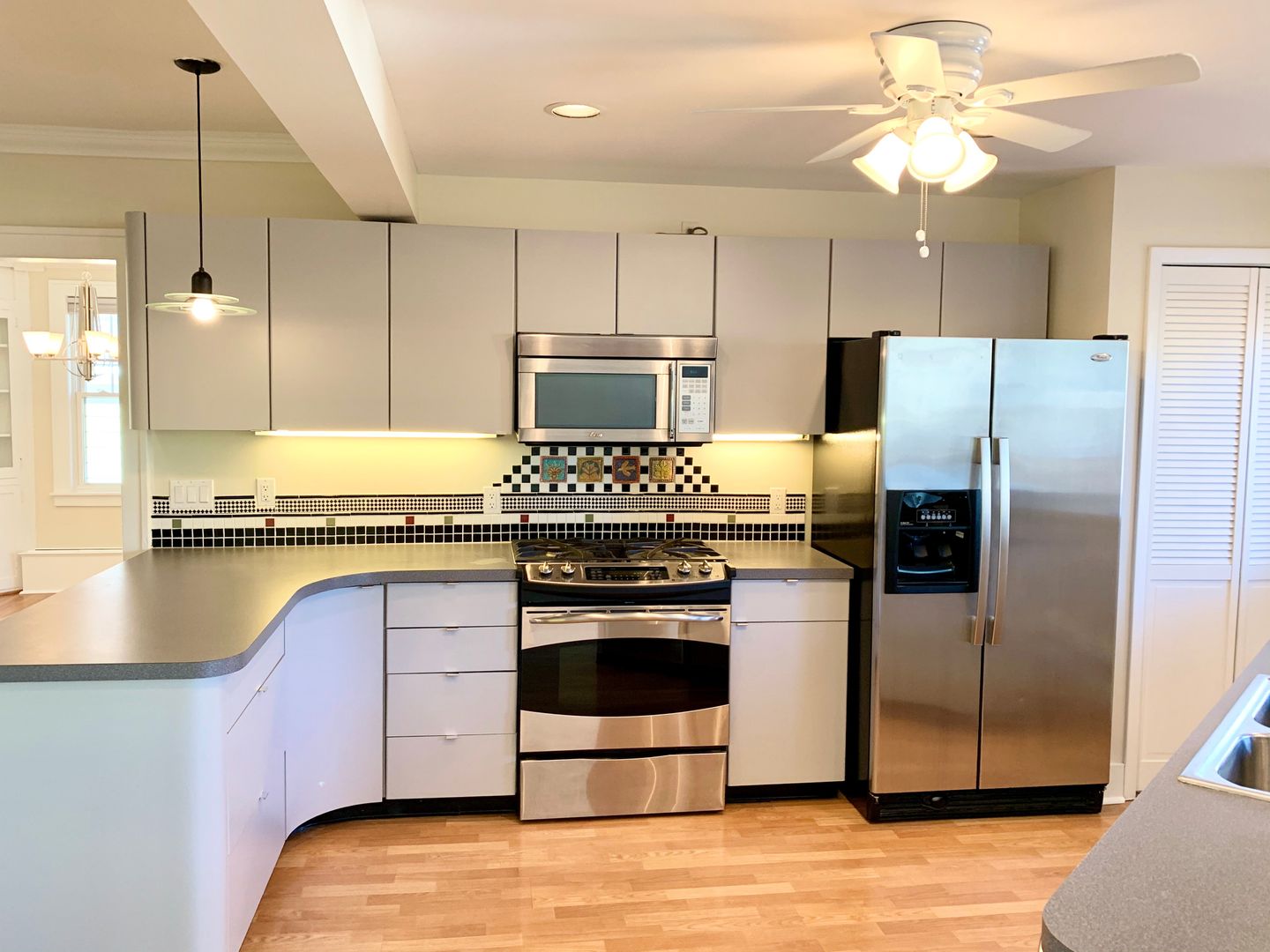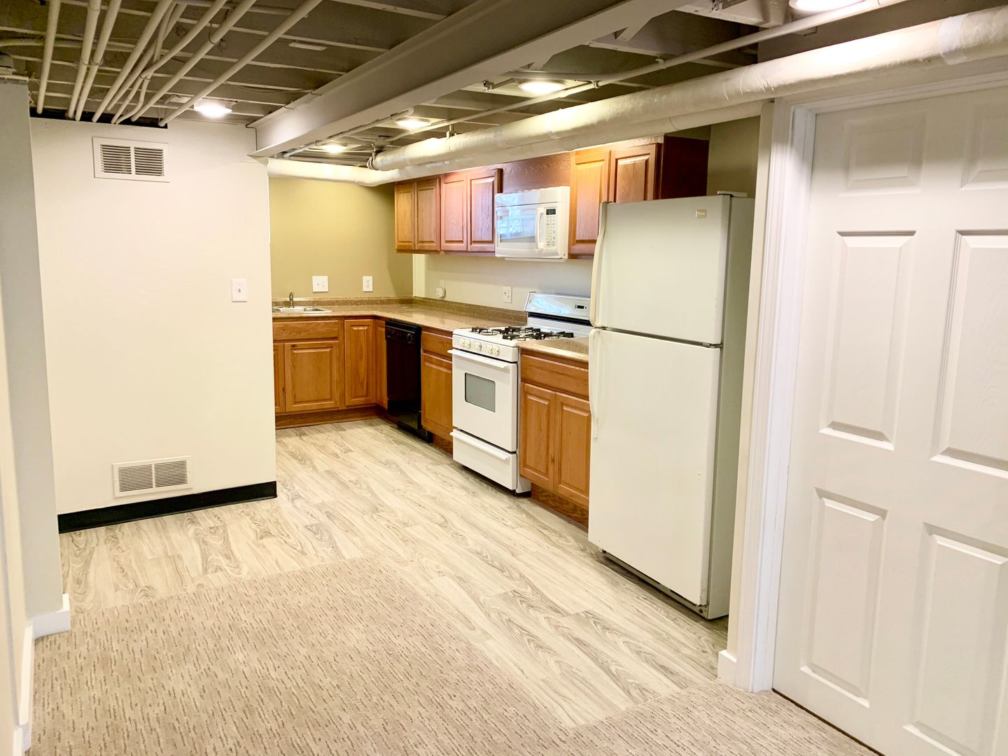This well-appointed 2 bedroom, 2 bathroom apartment features an open-concept kitchen with stainless steel appliances, a stately fireplace, beautiful hard wood floors, new plush carpeting, a generous walk-in bedroom closet, custom built-ins, a spacious basement with full second kitchen, and a dedicated garage space.